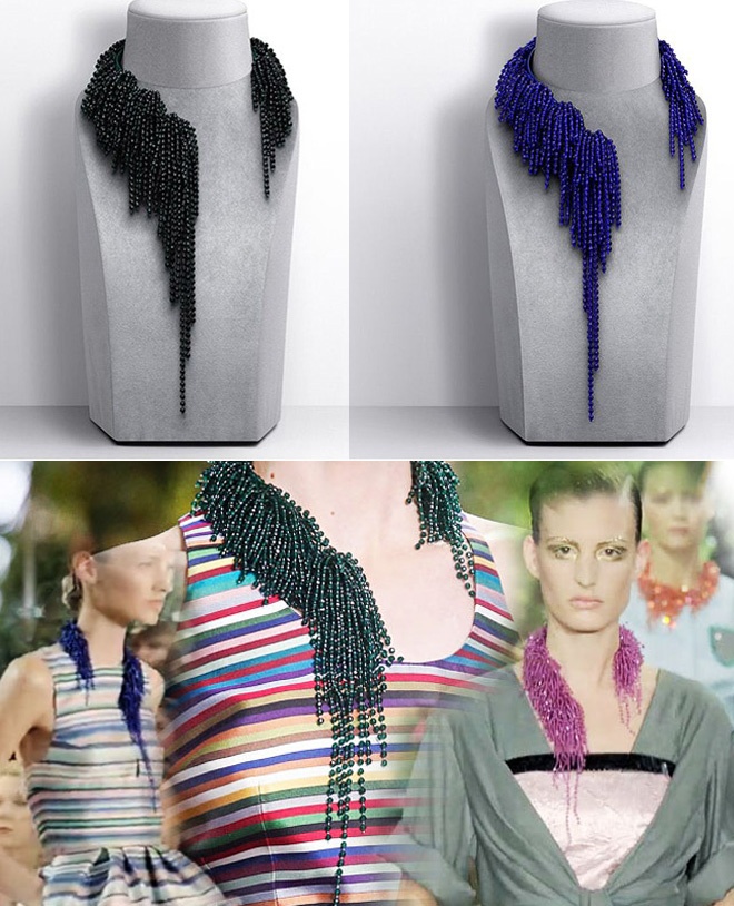 | Những kiểu vòng đeo cổ độc đáo của Dior tuy rất đẹp nhưng giá thật khó với tới, vì vậy, hãy thay thế bằng chiếc vòng cổ “Diorganic của Dior” do chính tay bạn tạo ra với chi phí rất tiết kiệm. |