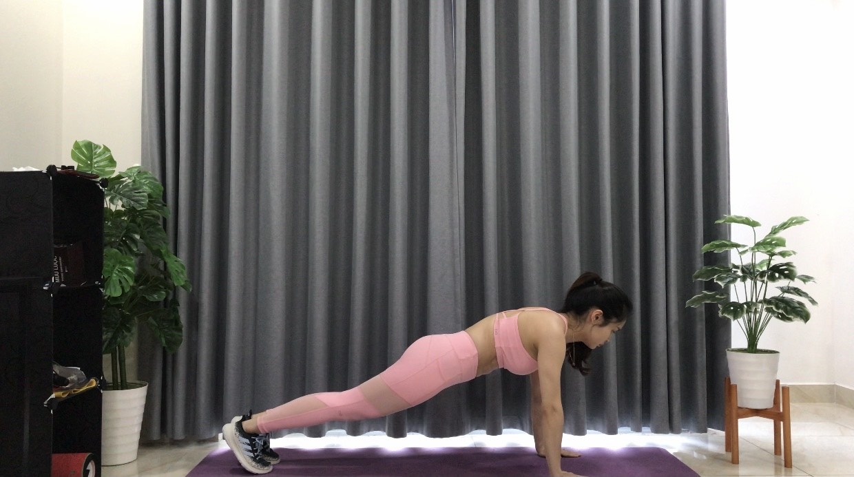 - Dùng hai tay đỡ thân người, chống mũi chân và giữ thân người thẳng.