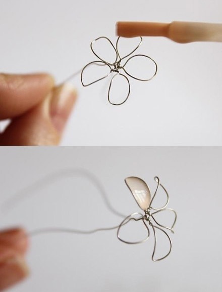 Không cần những chất liệu cầu kỳ, chỉ với dây thép mềm, vài ba lọ sơn móng tay, một mảnh giấy màu nâu gỗ... bạn có thể tự tay làm ra một chiếc vòng đầy nữ tính và xinh xắn.