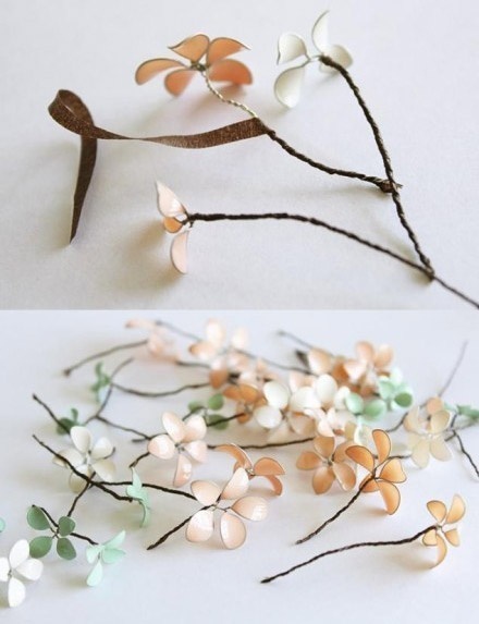 Cuốn giấy nhám xung quanh cành hoa.