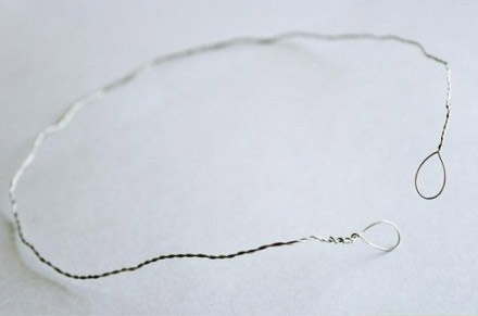 Cắt 1 đoạn dây thép khác, đo sao cho gấp 2 lần vòng tay. Gập lại, vặn xoắn và