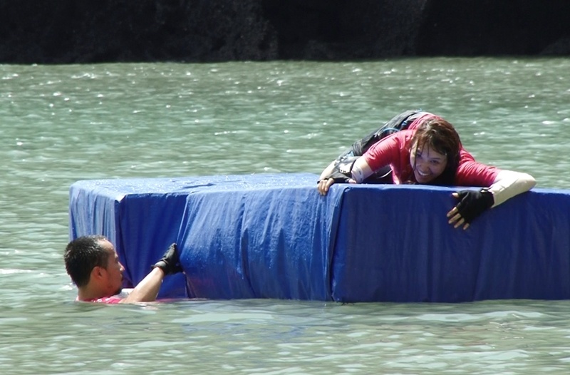 Yêu cầu đặt ra là hai thành viên của đội phải bơi ra giữa biển nơi có đặt hai chiếc phao lớn của chương trình, họ phải tìm cách để leo lên một chiếc phao. Sau đó một người tạo dáng để người kia chụp ba tấm ảnh toàn thân.