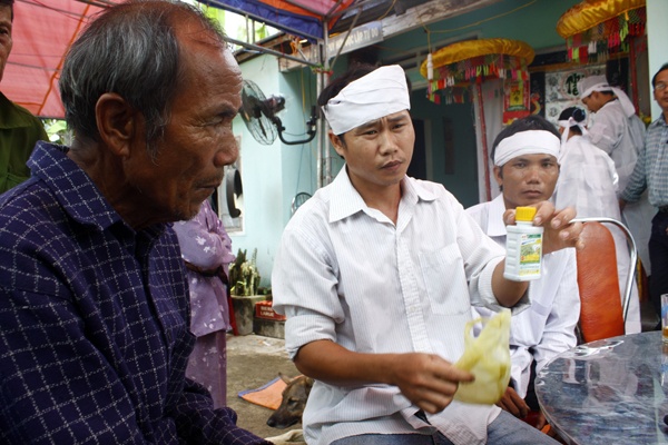 Em của ông Thái là Phạm Hồng Phong (36 tuổi) tay cầm lọ thuốc sâu mà anh trai đã uống và hai bức thư tuyệt mệnh không giấu được nỗi xót xa. Cạnh đó là ông lão 77 tuổi ( bố ông Thái) chỉ biết đấm ngực, kêu oan thay con mình.