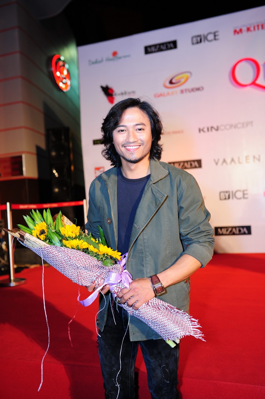 Diễn viên Quốc Bình xuất hiện ấn tượng với mái tóc xoăn dài rất nghệ sĩ.