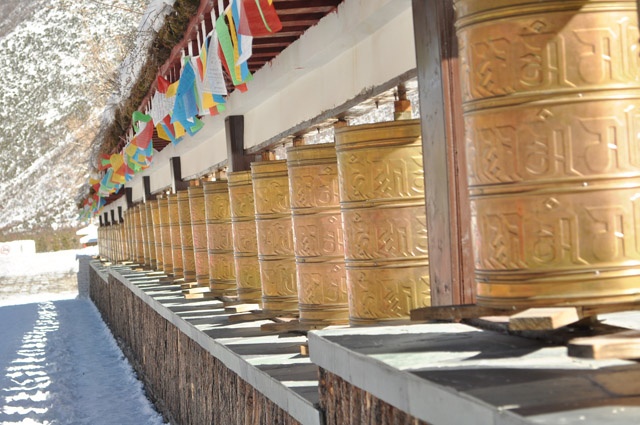 | Nằm trên độ cao hơn 3200 m, Songzanlin được xem là Tây Tạng thứ hai với những bãi cỏ cháy khô vàng rực bên cạnh những ngọn núi cao sừng sững phủ băng tuyết quanh năm. |