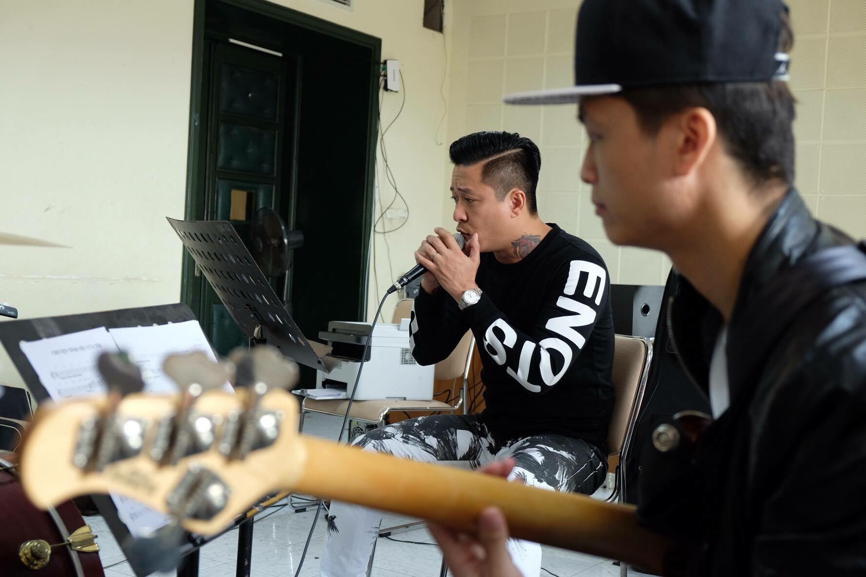 Hiện tại anh đang tích cực tập luyện cùng dàn nhạc, chuẩn bị tốt nhất mọi yếu tố trước khi xuất hiện trên sân khấu đêm nhạc sắp tới. |