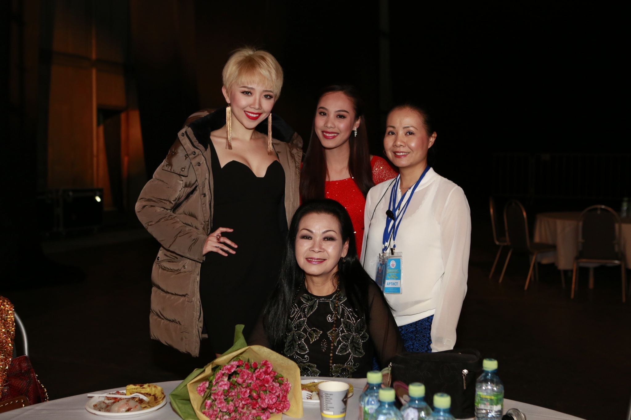| Các ca sĩ vui vẻ chụp ảnh kỷ niệm. |