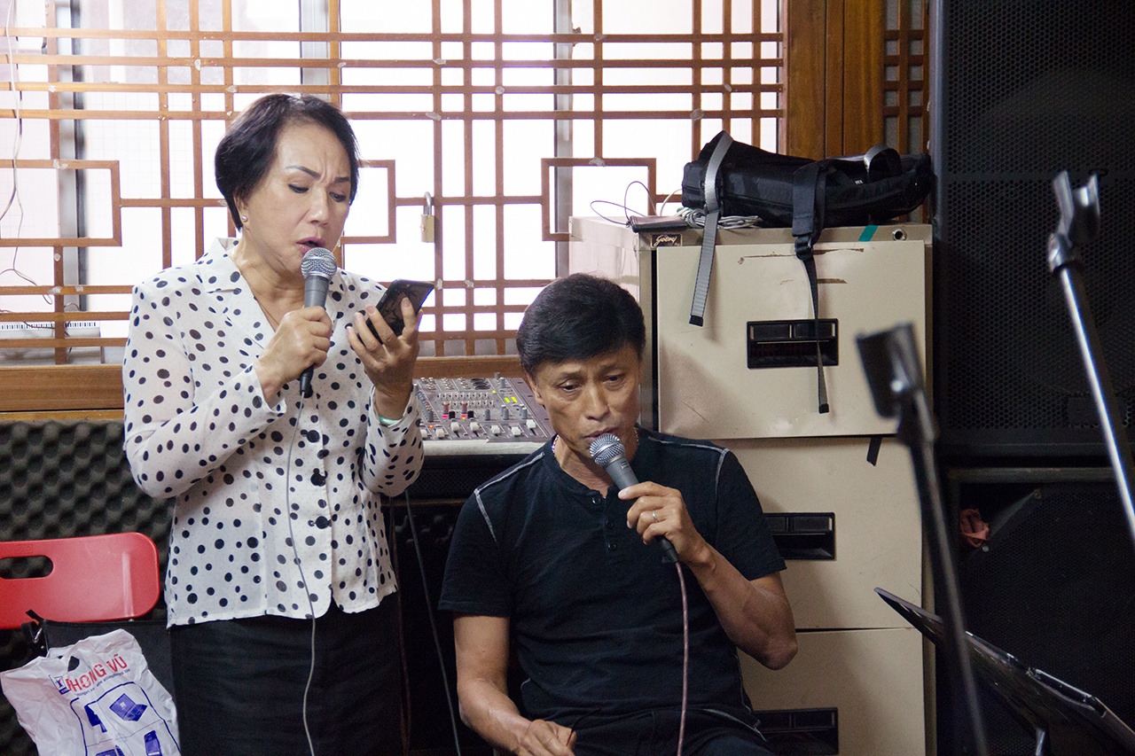 | Tuấn Ngọc, Lệ Thu tập duyệt cho đêm nhạc Riêng một góc trời. |