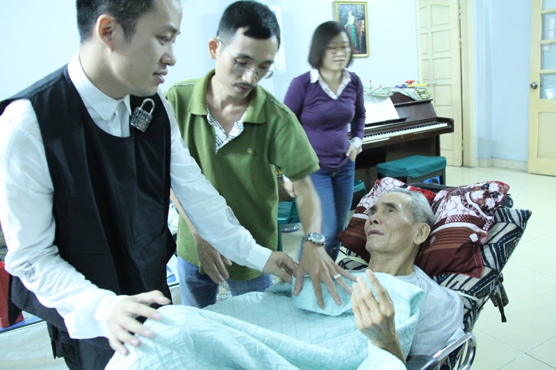 | Tác giả ca khúc Nơi đảo xa bị bệnh nặng cách đây gần một năm. Tuy ông bị liệt nửa người và không thể nói được nhưng vẫn nhận ra được những người thân quen. |