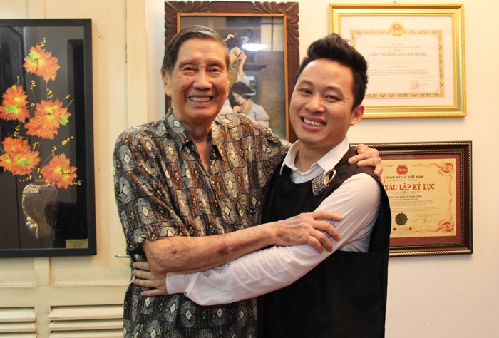 | Nam ca sĩ Độc đạo tìm đến nhà và thăm hỏi nhạc sĩ Phạm Tuyên. |
