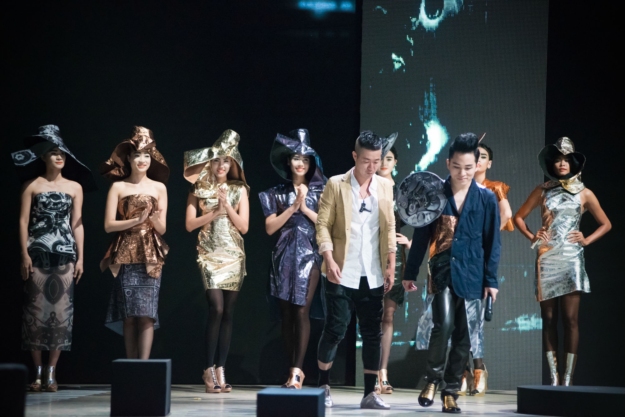 Nam ca sĩ cùng nhà thiết kế chào kết thúc màn.