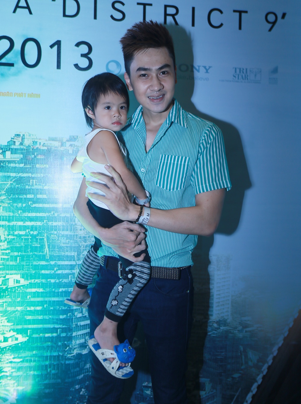 | Tùng Lâm bế đứa bé trên tay với cử chỉ tình cảm làm nhiều người có mặt tại buổi công chiếu phim hoang mang với suy nghĩ nam ca sĩ trẻ tuổi đã có con. Như đọc được ý nghĩ của mọi người, anh cười giải thích đứa bé là con của người chị, rất quấn quýt Tùng Lâm nên anh nhận cô bé là con gái nuôi. |