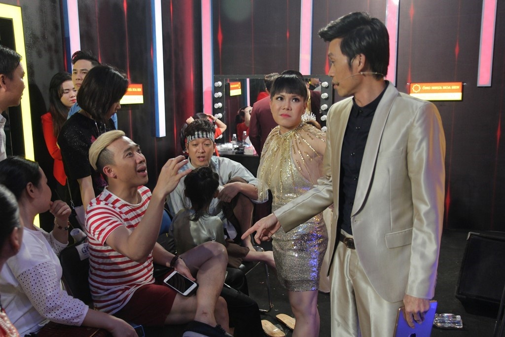 | Trong khi đó, Chí Tài và Trường Giang tranh thủ bàn bạc về kịch bản và những tình huống họ có thể đặt ra cho khách mời. Bộ đôi là những trưởng phòng lắm chiêu, thường xuyên đặt khách mời vào thế oái ăm trên sân khấu. |