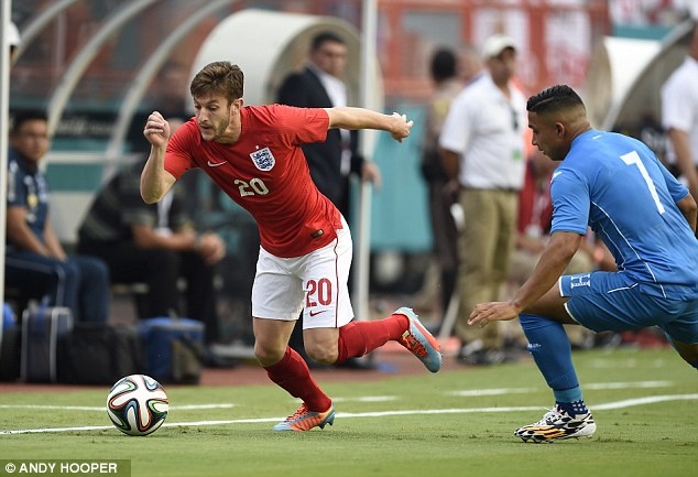 | Tiền vệ đang được săn đón Adam Lallana cũng rơi vào cảnh bất lực trước lối chơi chắc chắn của Honduras. |