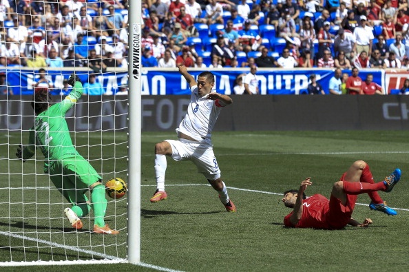 Tiền đạo Jozy Altidore thách thức thủ thành Kivrak, tuy vậy, cú đánh đầu của ngôi sao đang khoác áo Sunderland không thể chuyển hóa thành bàn thắng.