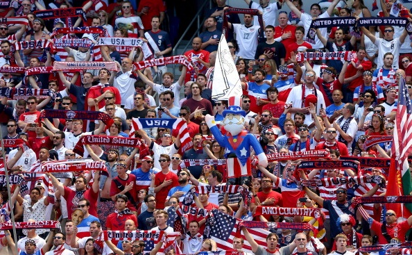 Niềm vui của CĐV tuyển Mỹ khi đội nhà vượt lên dẫn trước 2 bàn.