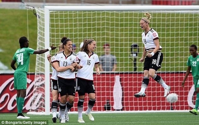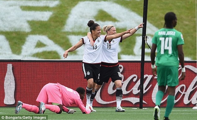 | Từ phút 71 đến 75, Laudehr và Dabritz lần lượt ghi bàn giúp ĐT nữ Đức dẫn trước đối phương 8 bàn. |