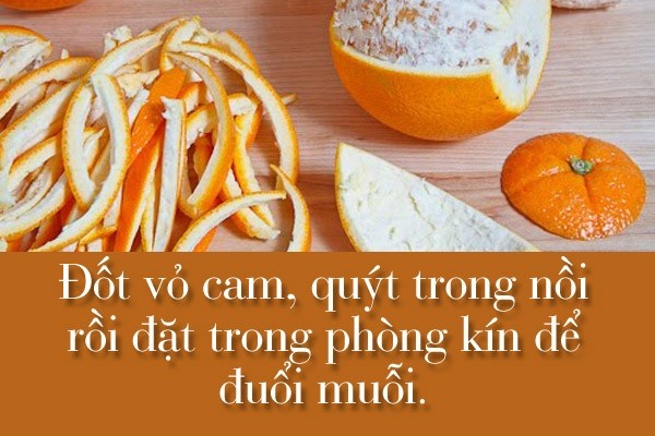 Sử dụng đốt vỏ cam, quýt hay chanh trong phòng để đuổi muỗi hay các côn trùng khác. Khi đốt bạn có thể đóng kín cửa, công trùng sẽ bị ngạt và rơi xuống sàn hoặc khi đốt mở cửa phòng để muỗi bay ra khỏi phòng nhé.