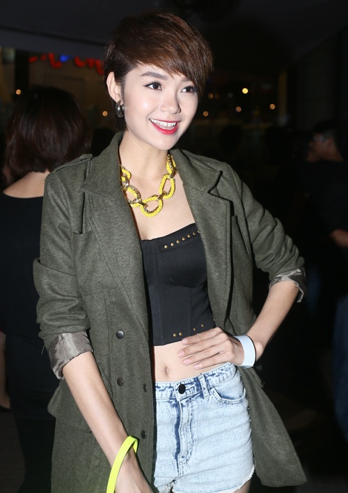 Với kiểu tóc ngắn, phong cách thời trang pha chút bụi bặm của denim rất phù hợp với Minh Hằng.