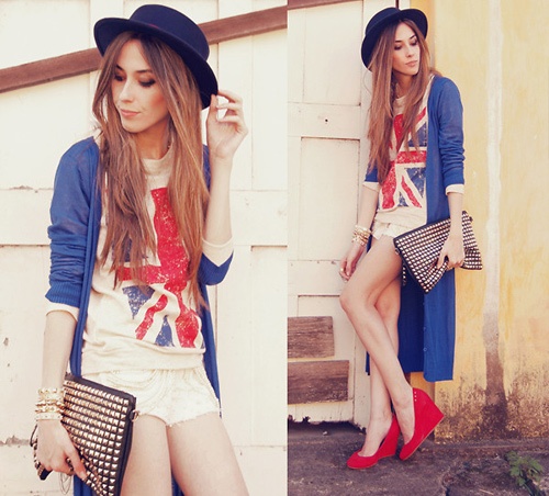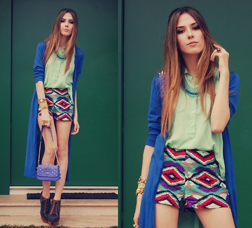 Quần short ngắn cũng rất đẹp khi diện kèm cardigan dáng dài và áo thun mỏng.
