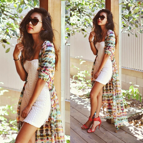 Cardigan cũng mix rất đẹp mắt với các kiểu đầm voan ren bởi nó giúp tăng vẻ tiểu thư cho người mặc.