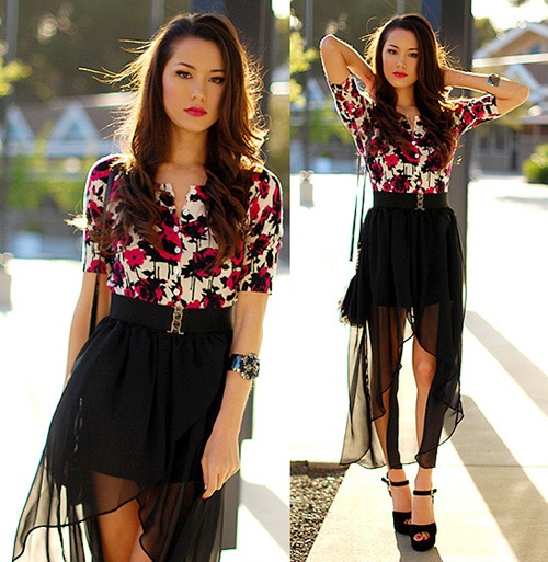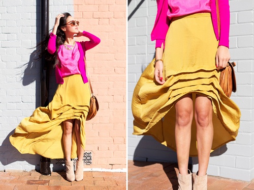 Gợi ý khi mix cardigan đóng thùng cùng chân váy high low gợi cảm.