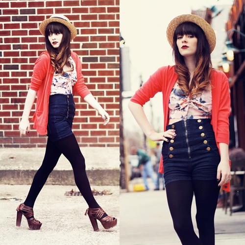 Cardigan cho cô nàng yêu phong cách vintage với quần short denim cạp cao và áo crop top.
