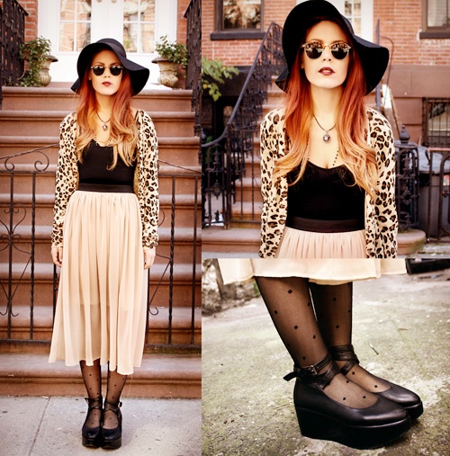 Cardigan da báo mang lại điểm nhấn cho chiếc đầm midi duyên dáng.