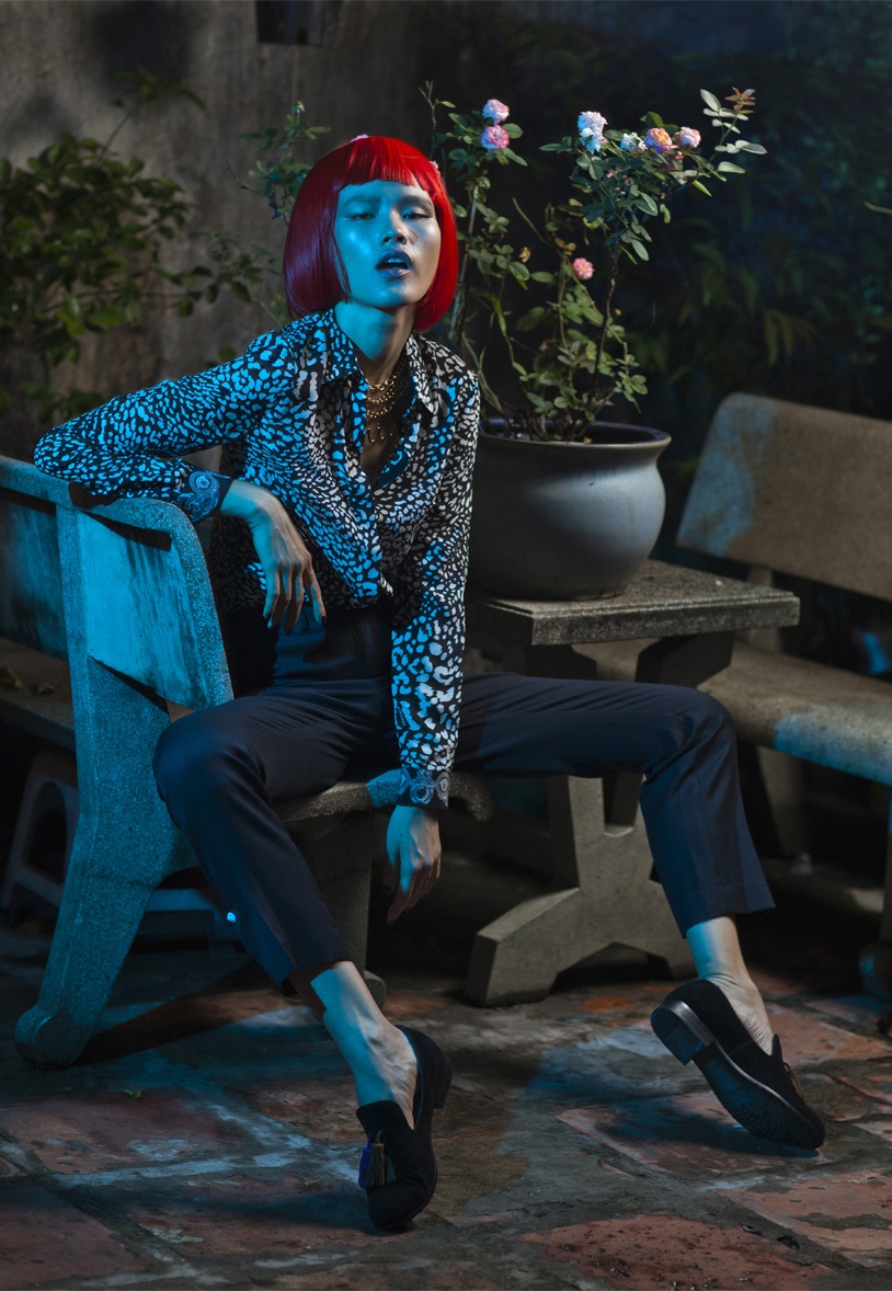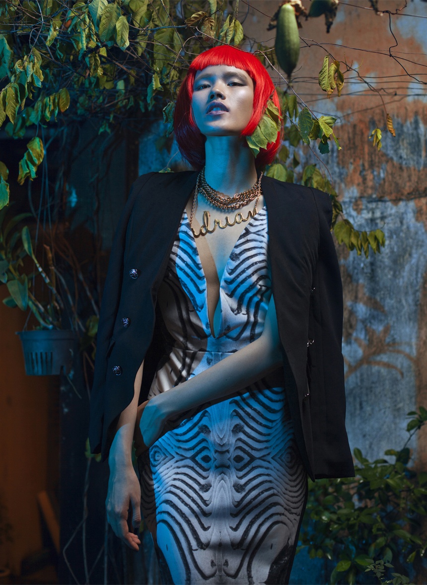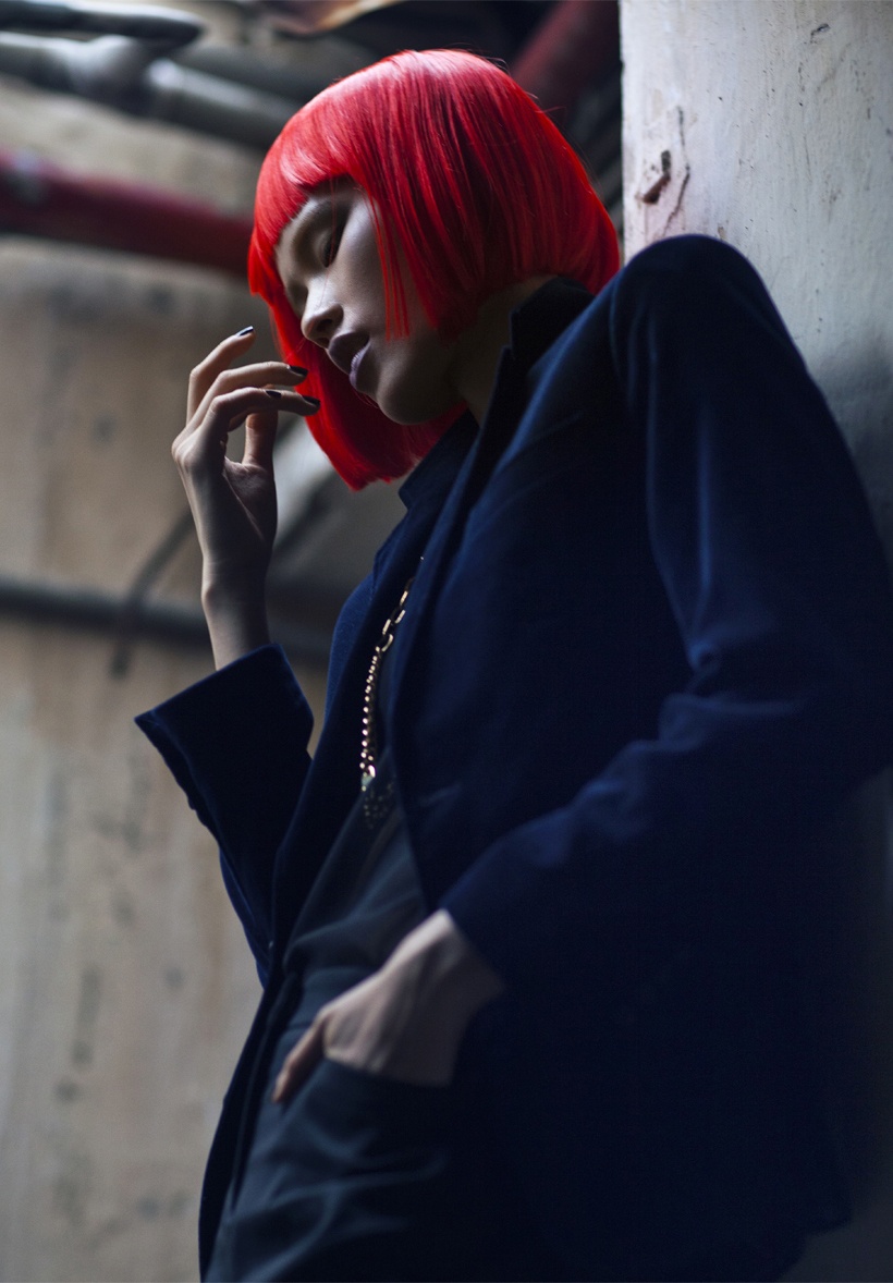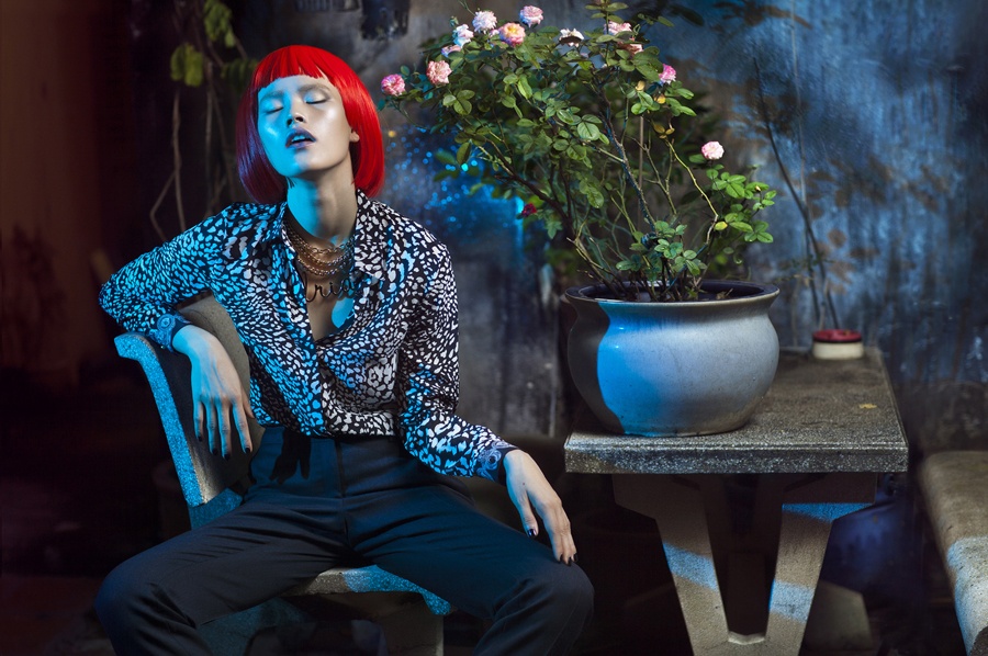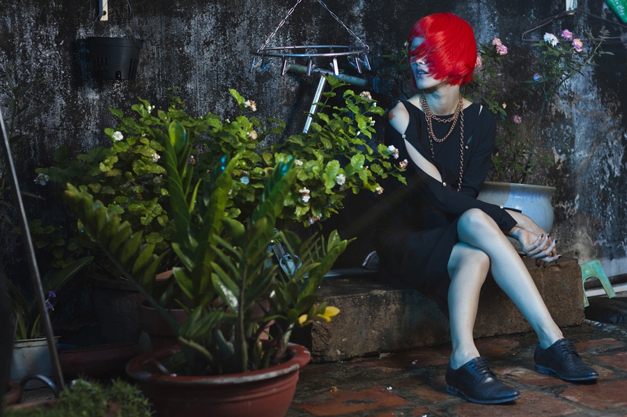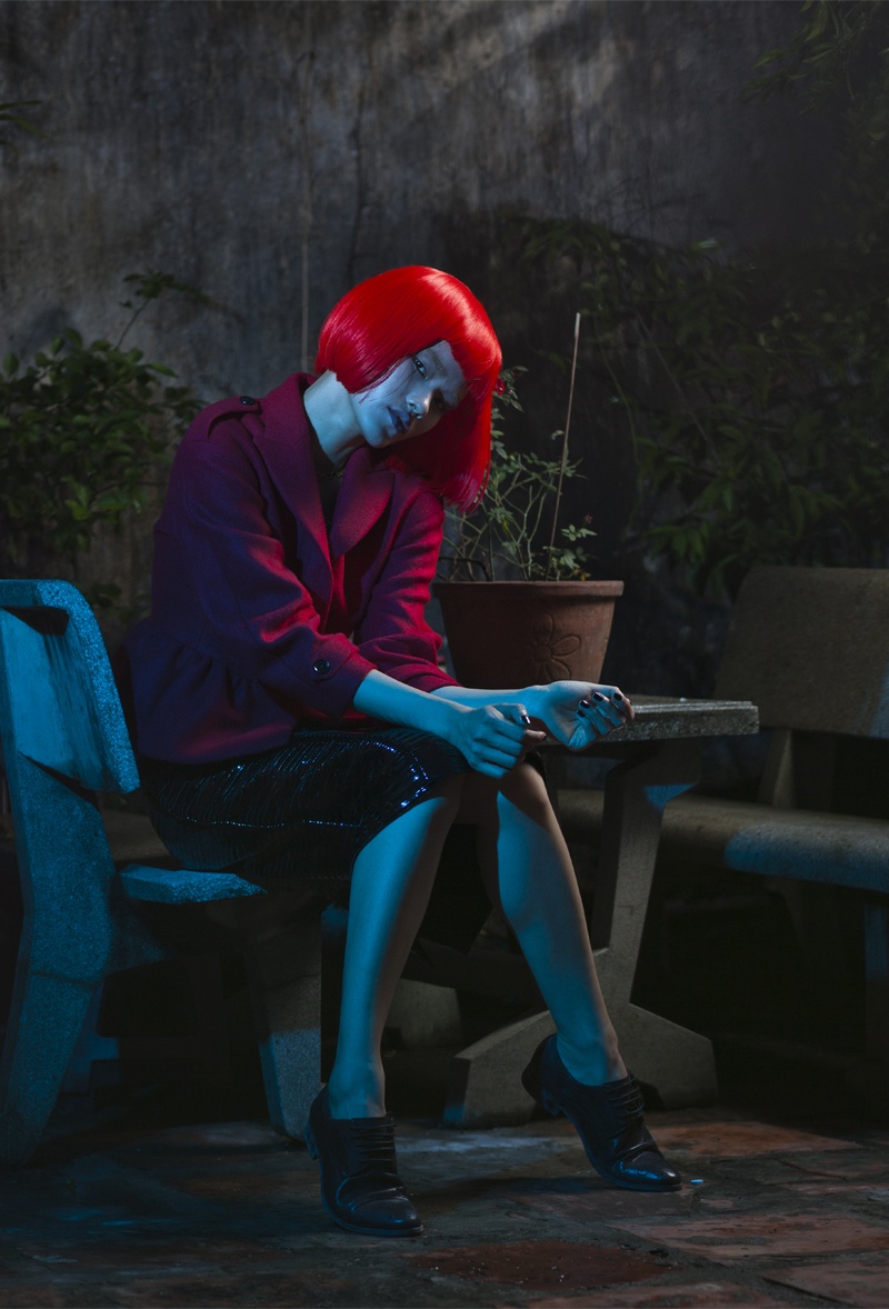 | Trong bộ ảnh mới, nữ người mẫu được tạo hình với mái tóc đỏ cá tính, khuôn mặt lạnh toát lên nhiều biểu cảm giúp bộ ảnh trở nên có ý nghĩa và tràn đầy tâm trạng. |