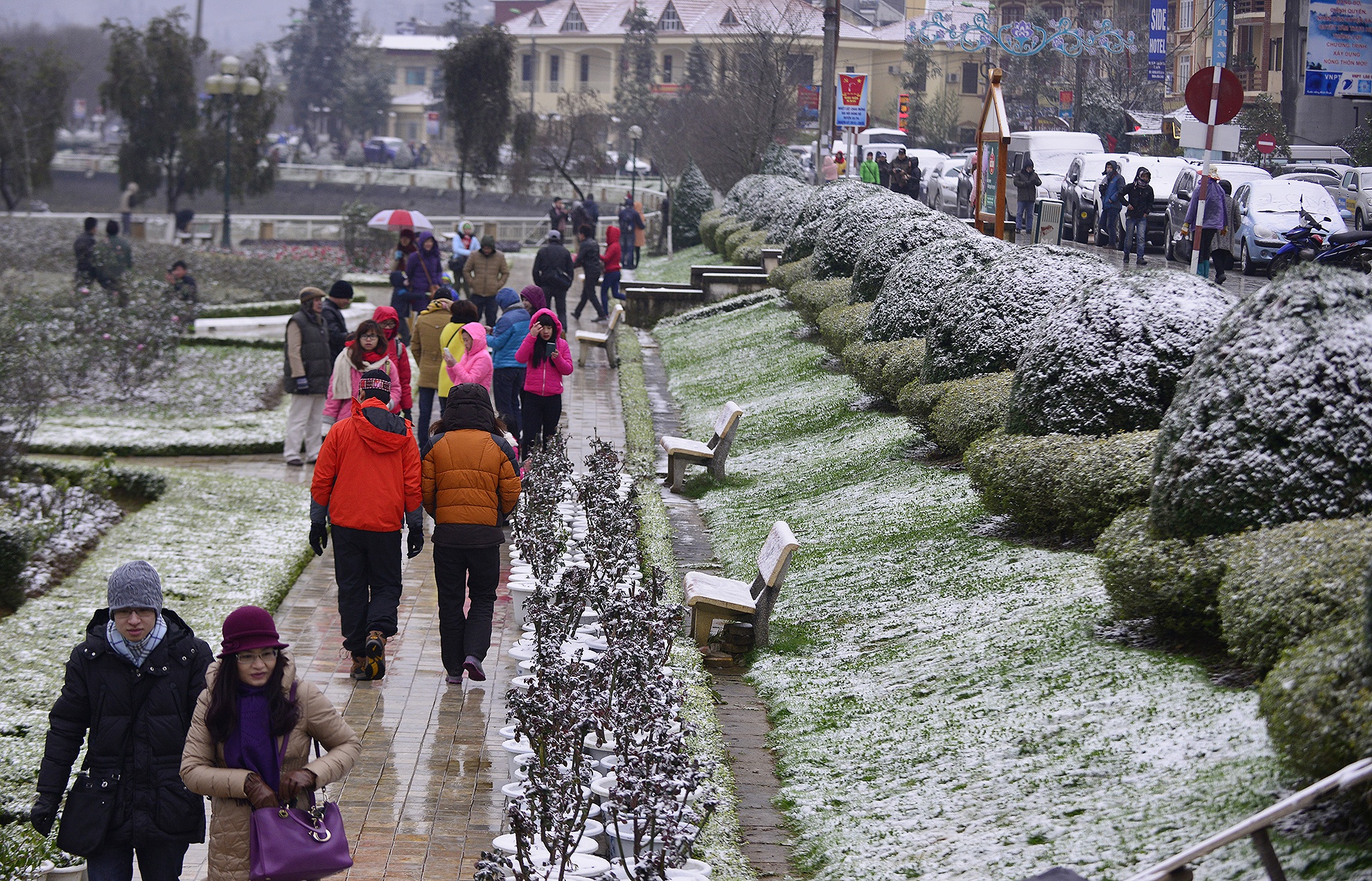 Đến gần trưa, du khách đổ về Sa Pa ngày càng đông. Nhiều nhà nghỉ, khách sạn đã cháy phòng, hoặc khách thuê được nhưng giá rất cao. Cơ quan khí tượng cho hay, miền Bắc đang trải qua đợt rét kỷ lục 30 năm khi hầu khắp địa phương đều có mức nhiệt thấp hơn mức ghi nhận năm 1983. |
