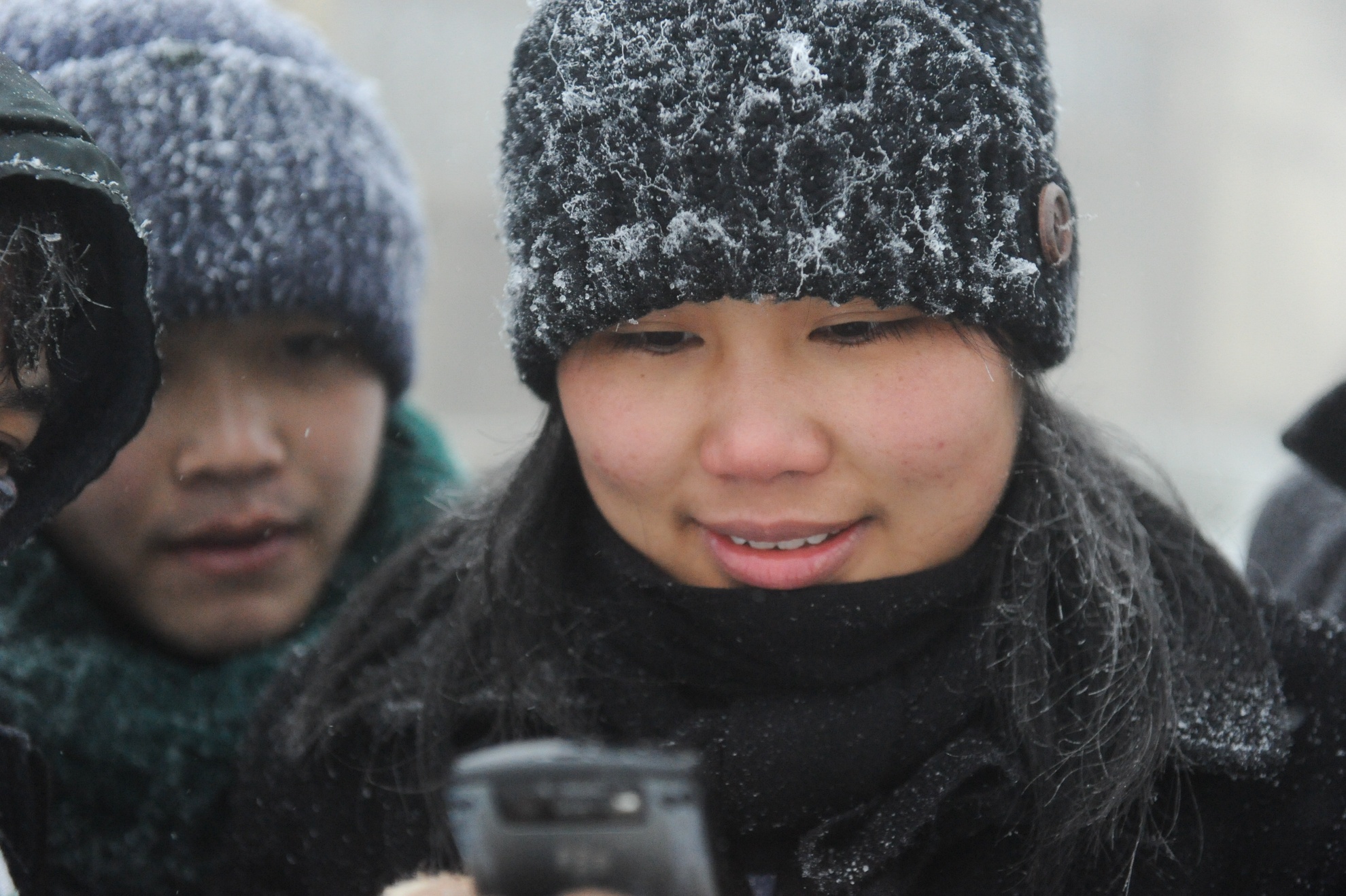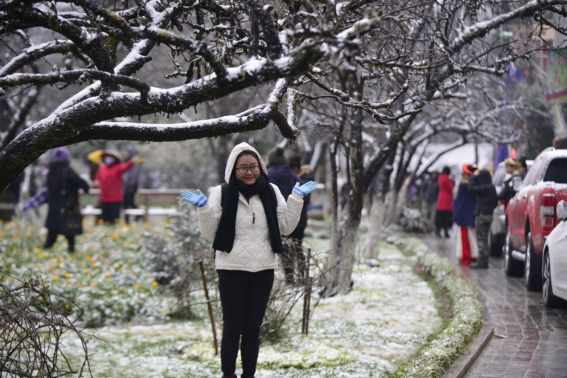 Huyền, một bạn gái đến từ Hà Nội lên Sa Pa đúng dịp tuyết rơi. "Đây là lần đầu tiên được chứng kiến hình ảnh đẹp và thơ mộng như vậy", bạn nói. |