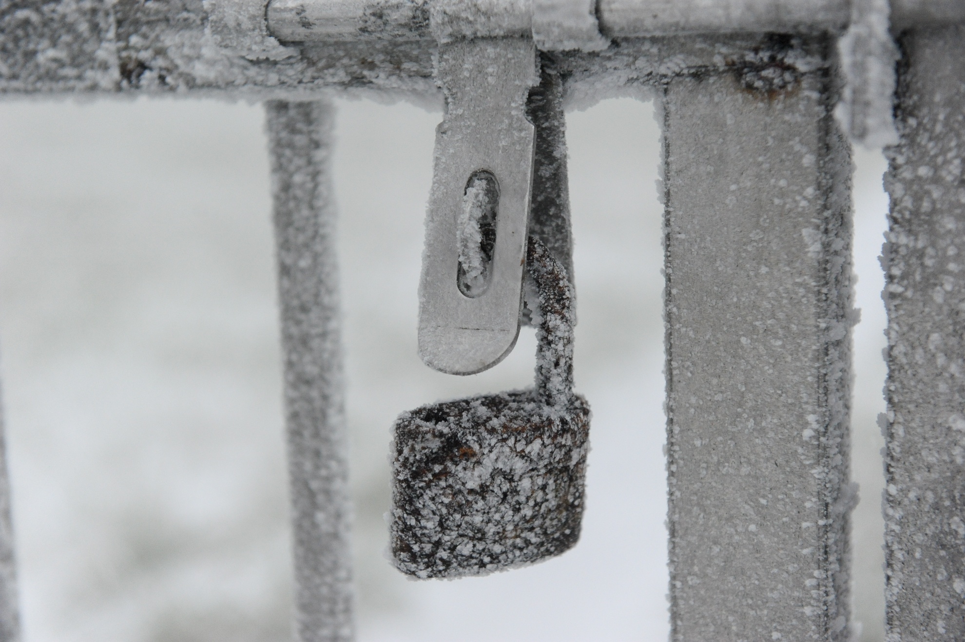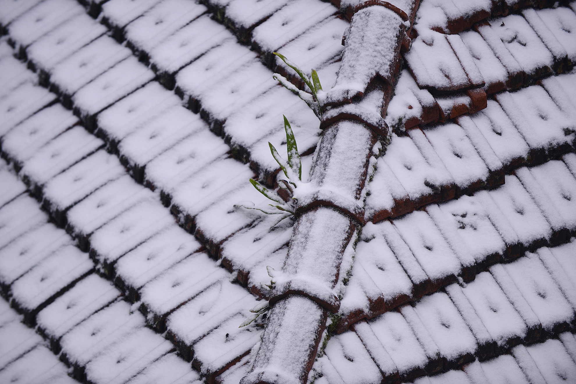Tuyết đóng băng cây cỏ mọc trên mái nhà. |