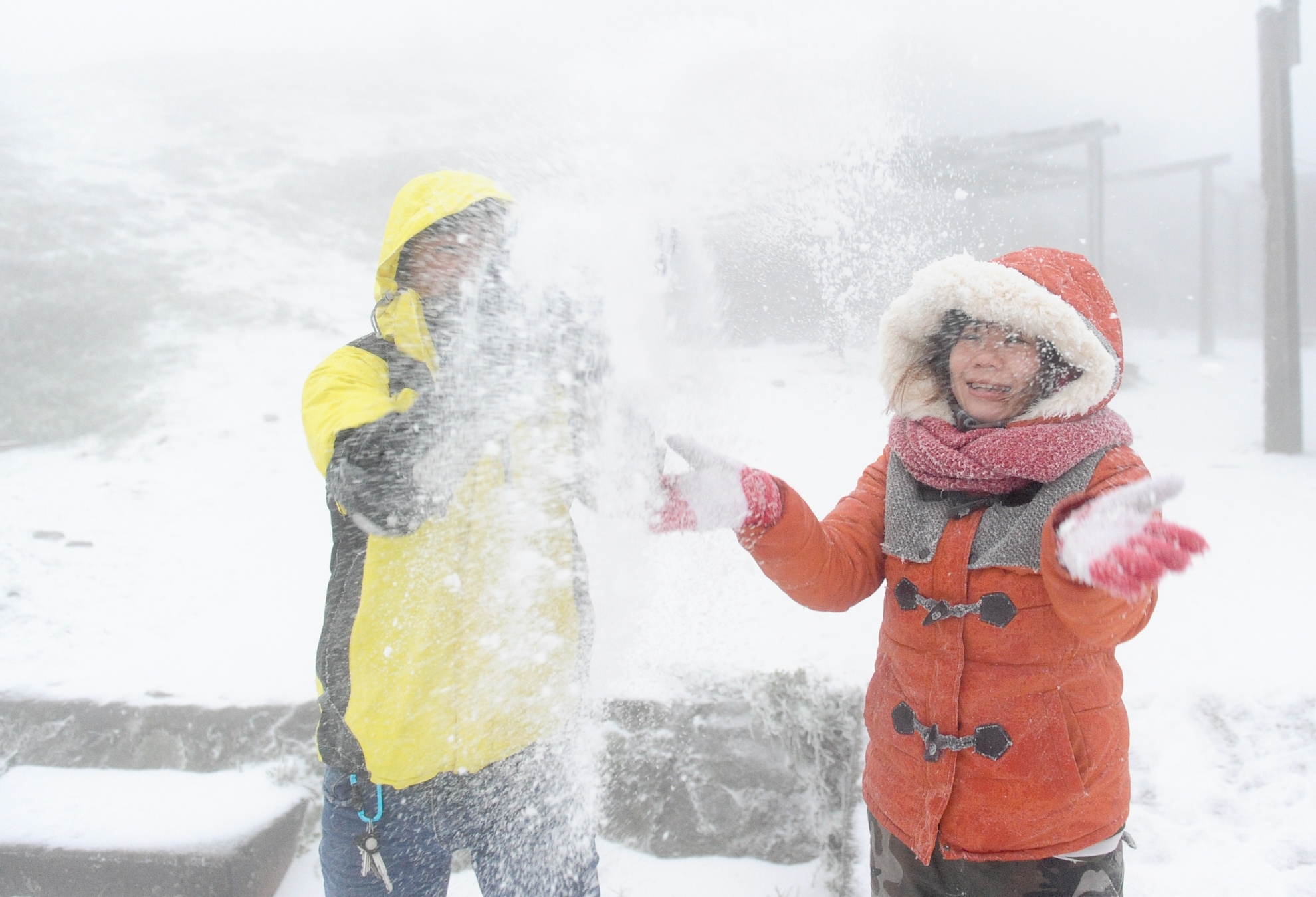 Nhiều du khách thích thú chơi trò ném tuyết... |
