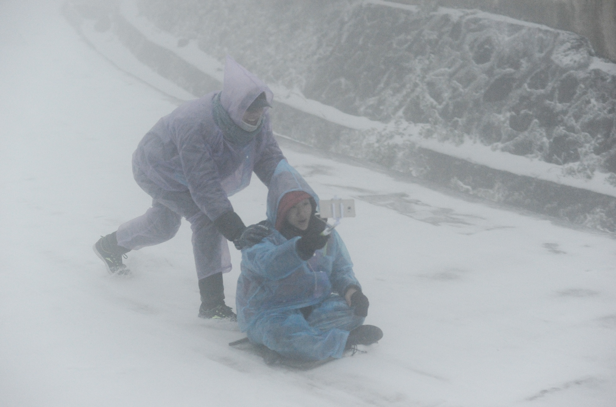Băng giá từ hôm qua, kết hợp với tuyết rơi của ngày hôm nay khiến đỉnh Mẫu Sơn hiện lên với vẻ đẹp kỳ lạ. |