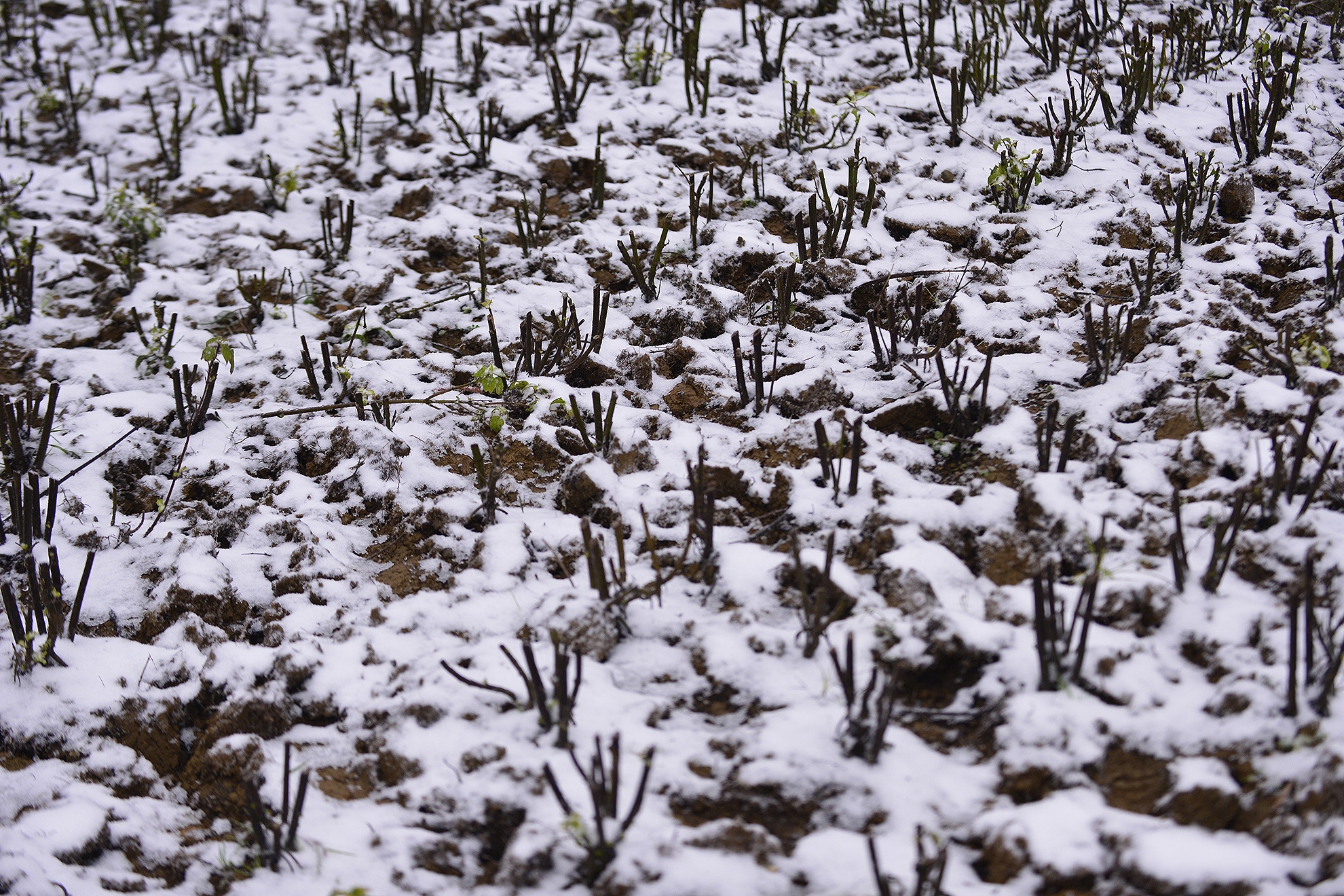 Một số cây mới trồng tại vườn hoa Sa Pa bị phủ bởi tuyết. Nhiều người dân bản địa cho biết, khi bị lạnh do tuyết, băng phủ, cơ hội sống sót của những loài cây này không còn. |