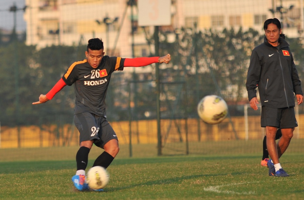 | Trợ lý HLV Phùng Thanh Phương theo sát quá trình tập luyện của các cầu thủ. |