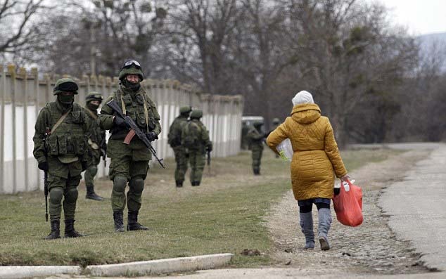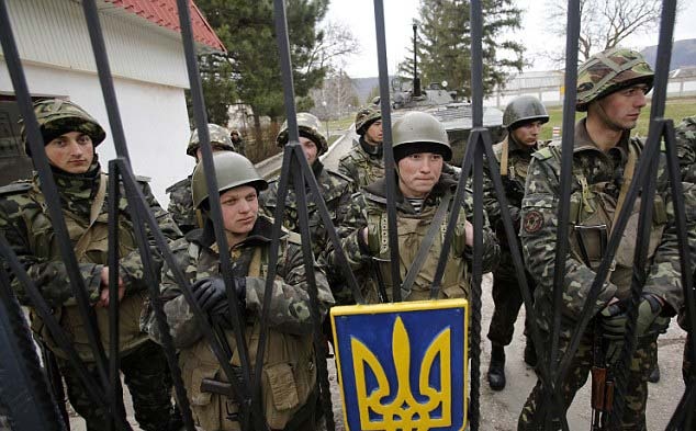 Giới chức Ukraina nói từ khi binh sĩ Nga tràn vào Crimea, họ bao vây và tước vũ khí của nhiều căn cứ quân sự Ukraina trên bán đảo. Ảnh: AP.