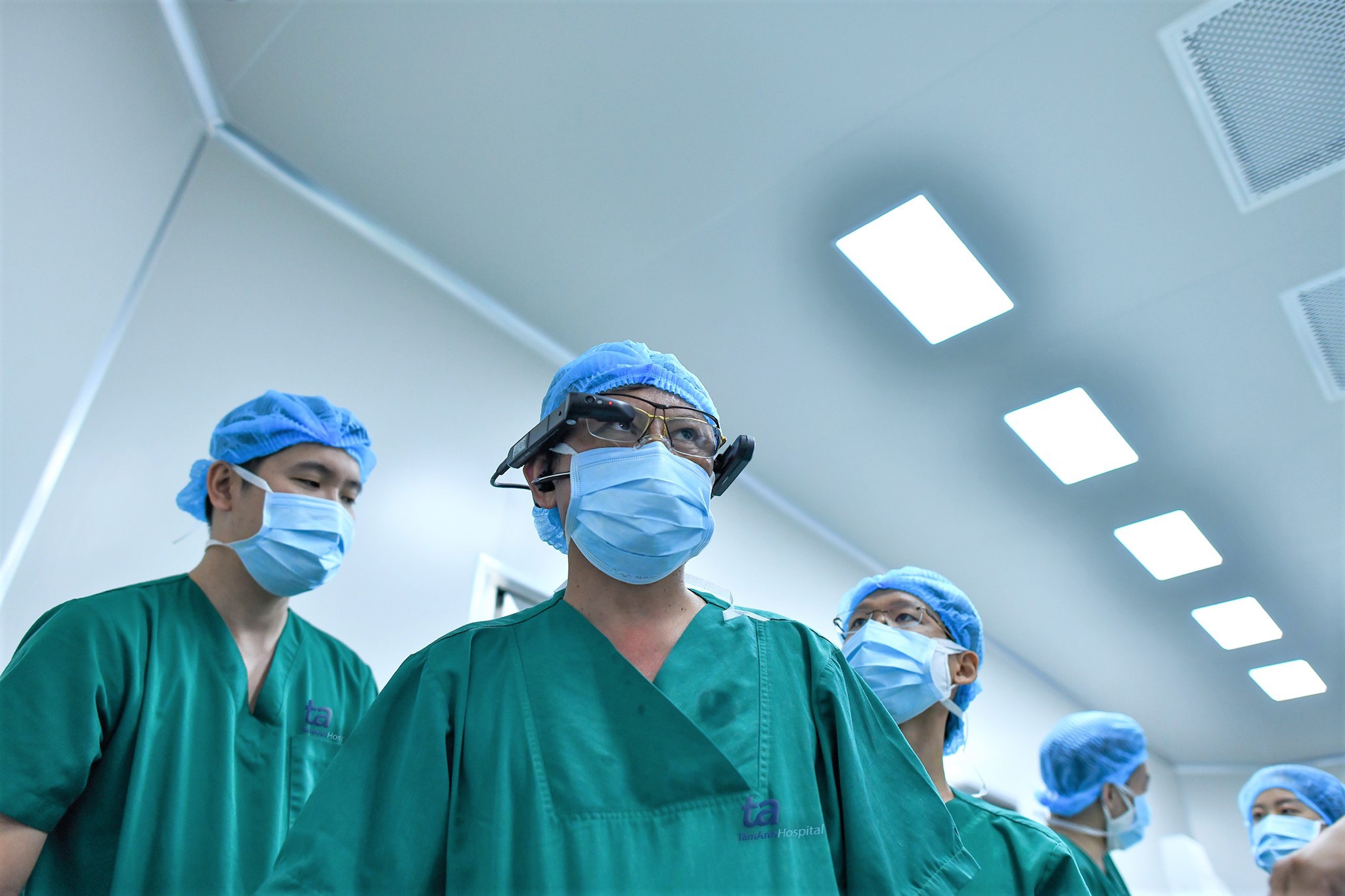 Cuộc đối thoại nhanh của TS.BS Tăng Hà Nam Anh, Giám đốc Trung tâm Chấn thương chỉnh hình - Hệ thống Bệnh viện Đa khoa (BVĐK) Tâm Anh, và cộng sự trong kíp mổ nhanh chóng ngừng lại. So với hàng nghìn ca mổ TS Nam Anh từng thực hiện, quy trình lần này có chút khác biệt vì có thêm một thao tác liên quan đến phẫu thuật viên chính: Mắt thần thực tế ảo - Navigation Knee+.