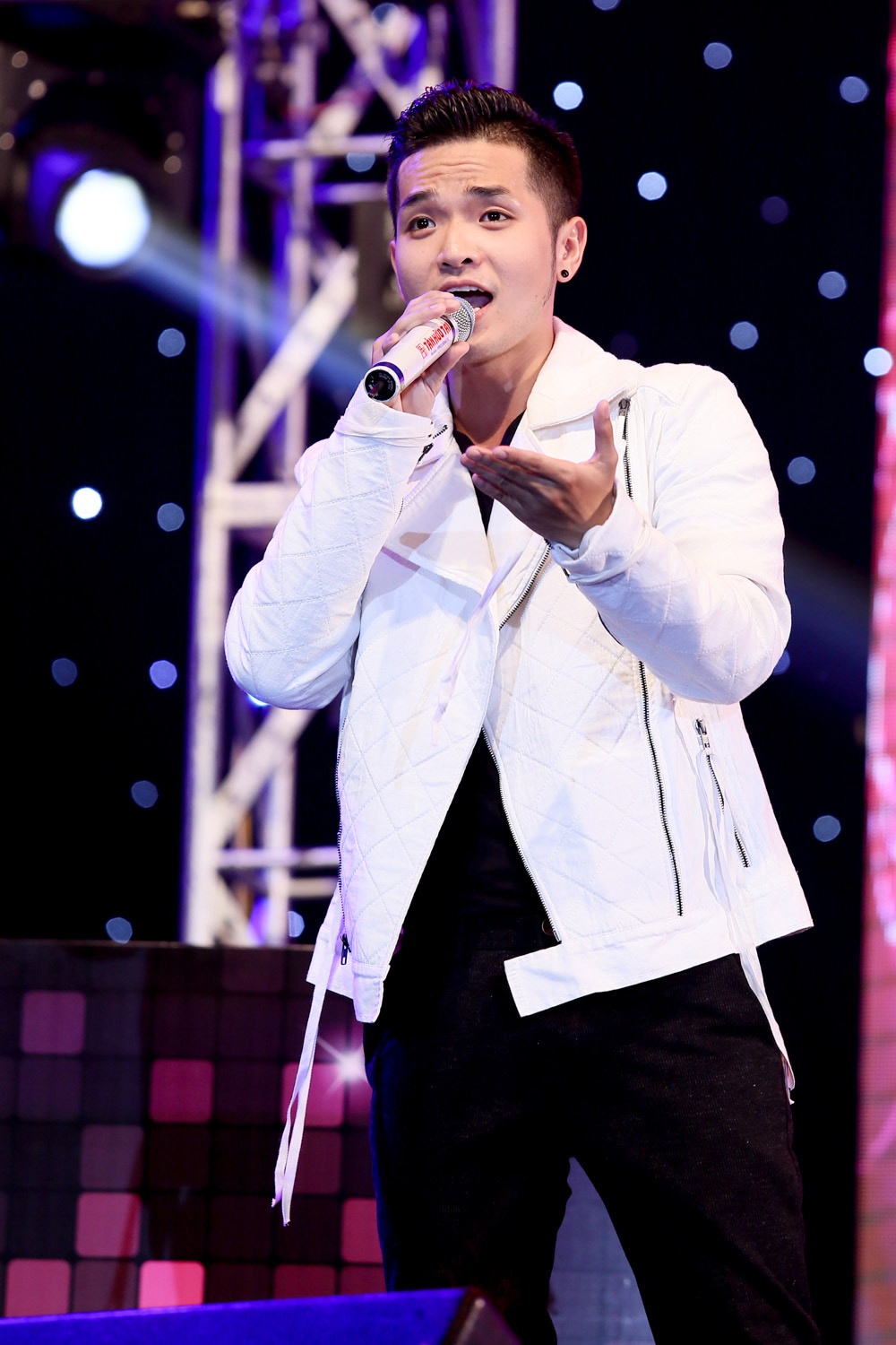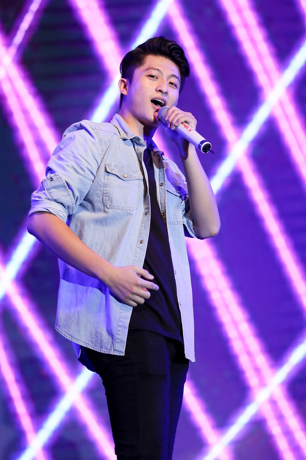 | Lần đầu khoe giọng hát trên một sân khấu lớn, song Harry Lu khá tự tin thể hiện ca khúc nhạc ngoại Baby. |