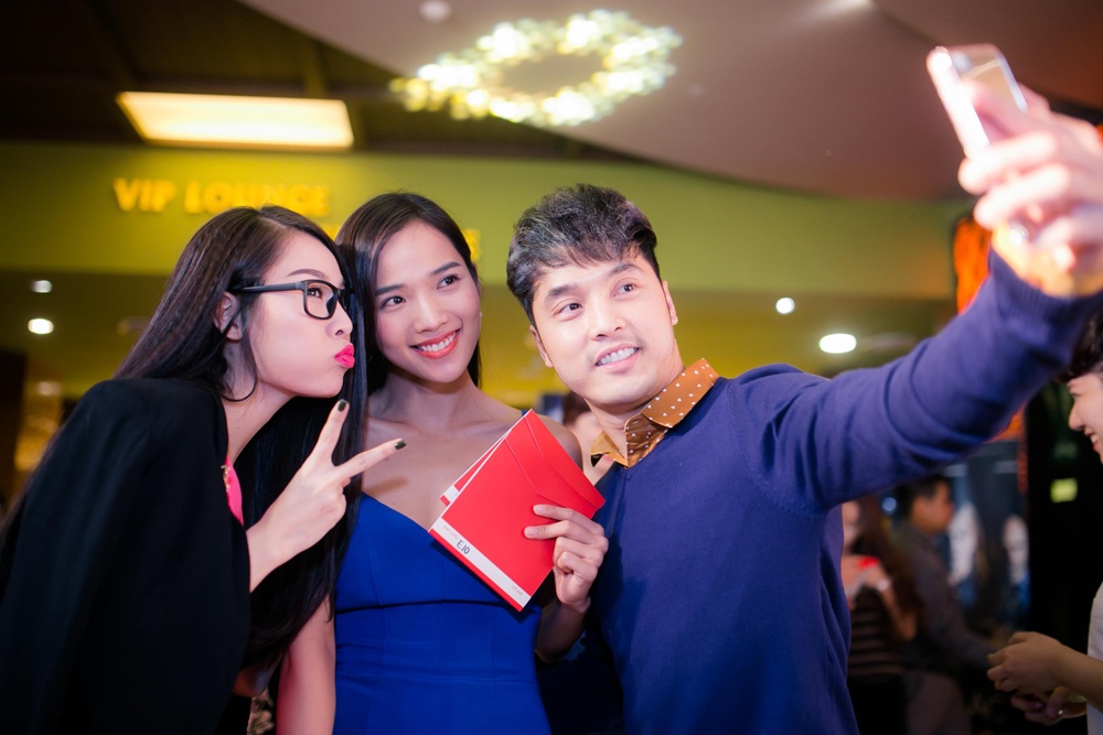 | Bộ ba thoải mái chụp ảnh theo phong cách selfie tại sự kiện để đăng tải trên trang cá nhân. |