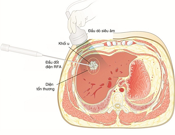 | Đốt u gan qua da dưới hướng dẫn siêu âm bằng RFA. |