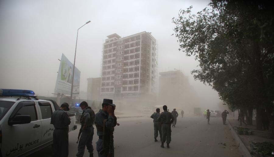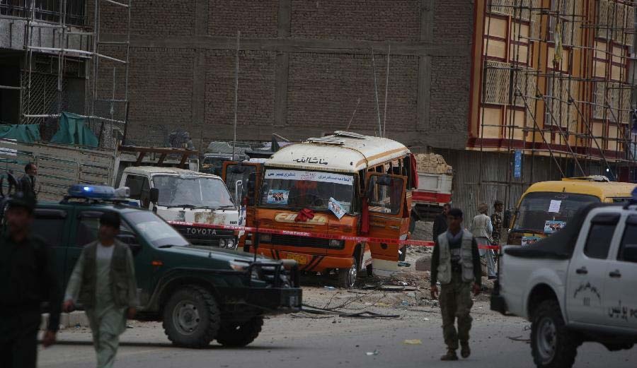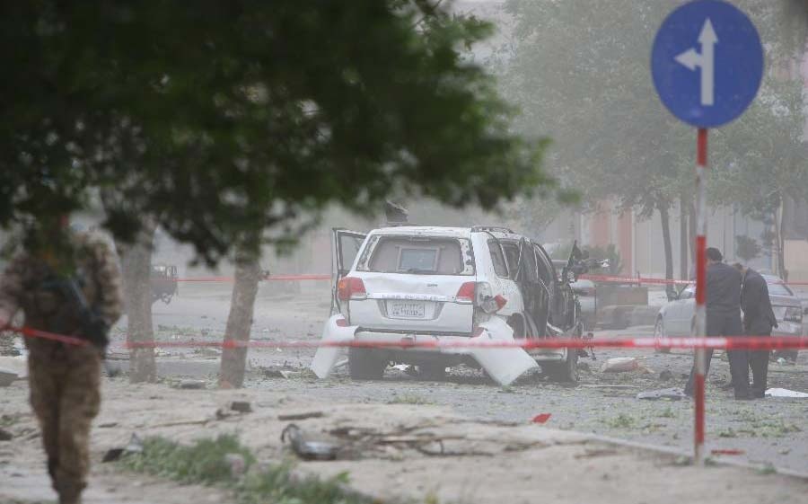 | Cảnh tan hoang sau vụ đánh bom. Vụ khủng bố xảy ra trước ngày 14/6, thời điểm bầu cử tổng thống Afghanistan vòng hai sẽ diễn ra. |