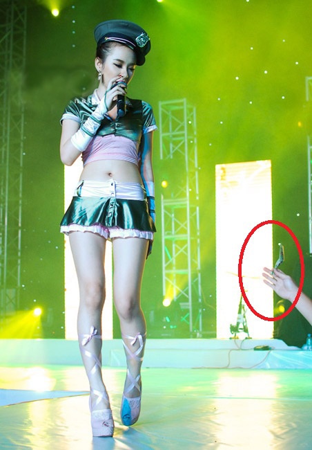 | Khi nhìn thấy hành động của khán giả này, Angela Phương Trinh tỏ ra bất ngờ vài giây nhưng sau đó cô cũng ngoảnh mặt làm ngơ để tiếp tục phần trình diễn của mình. |