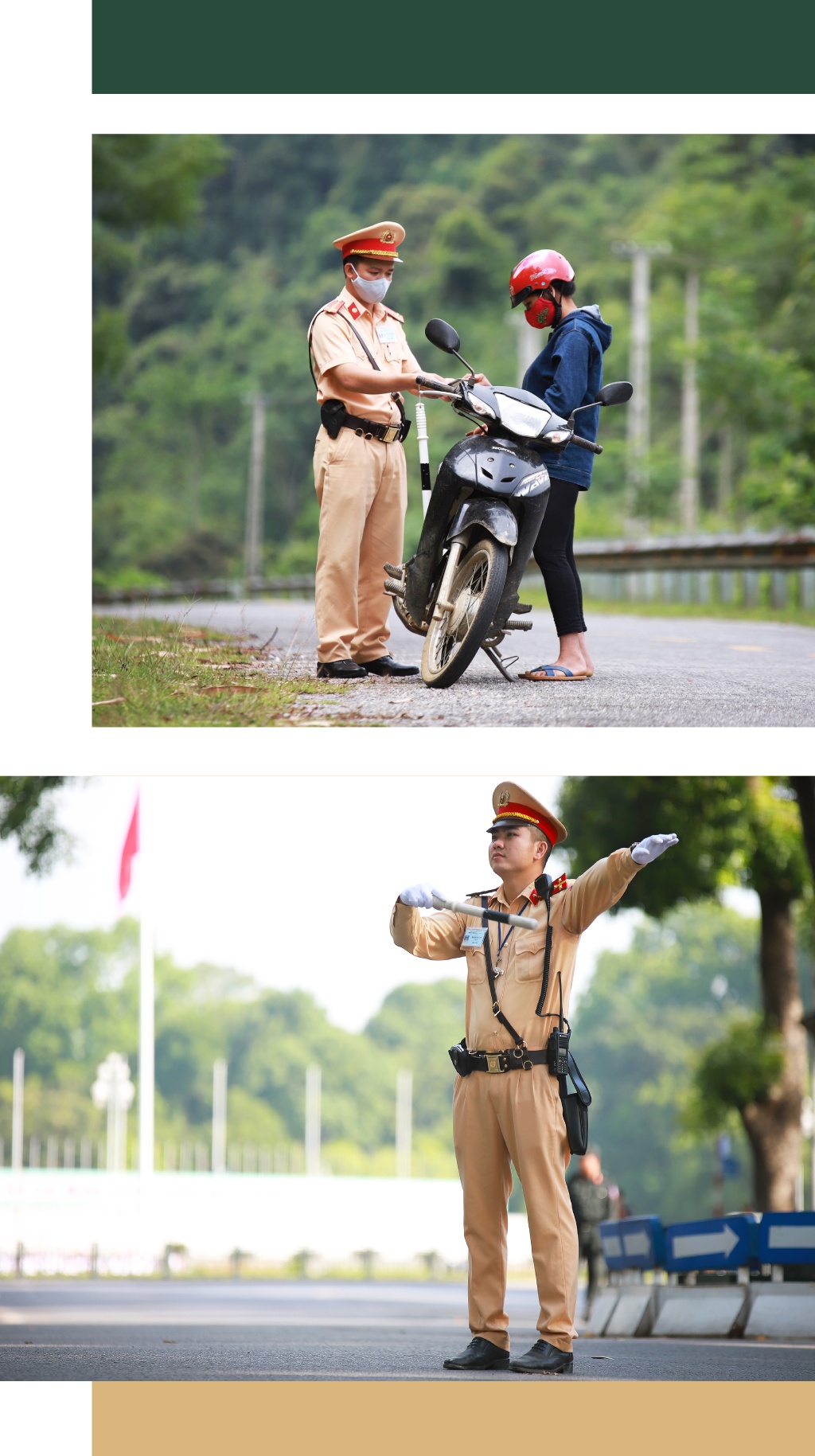 Khi có lệnh phong tỏa, CSGT lập tức phối hợp với các lực lượng chức năng lập chốt chặn. Anh em chiến sĩ không quản ngày đêm, vất vả để phối hợp với ngành y tế, sát cánh cùng nhân dân chống giặc Covid-19. Suốt hành trình chống dịch, không có chiến sĩ CSGT nào bị ảnh hưởng trực tiếp bởi dịch bệnh nhưng đã có 2 cán bộ hy sinh trong quá trình làm công tác chống dịch.