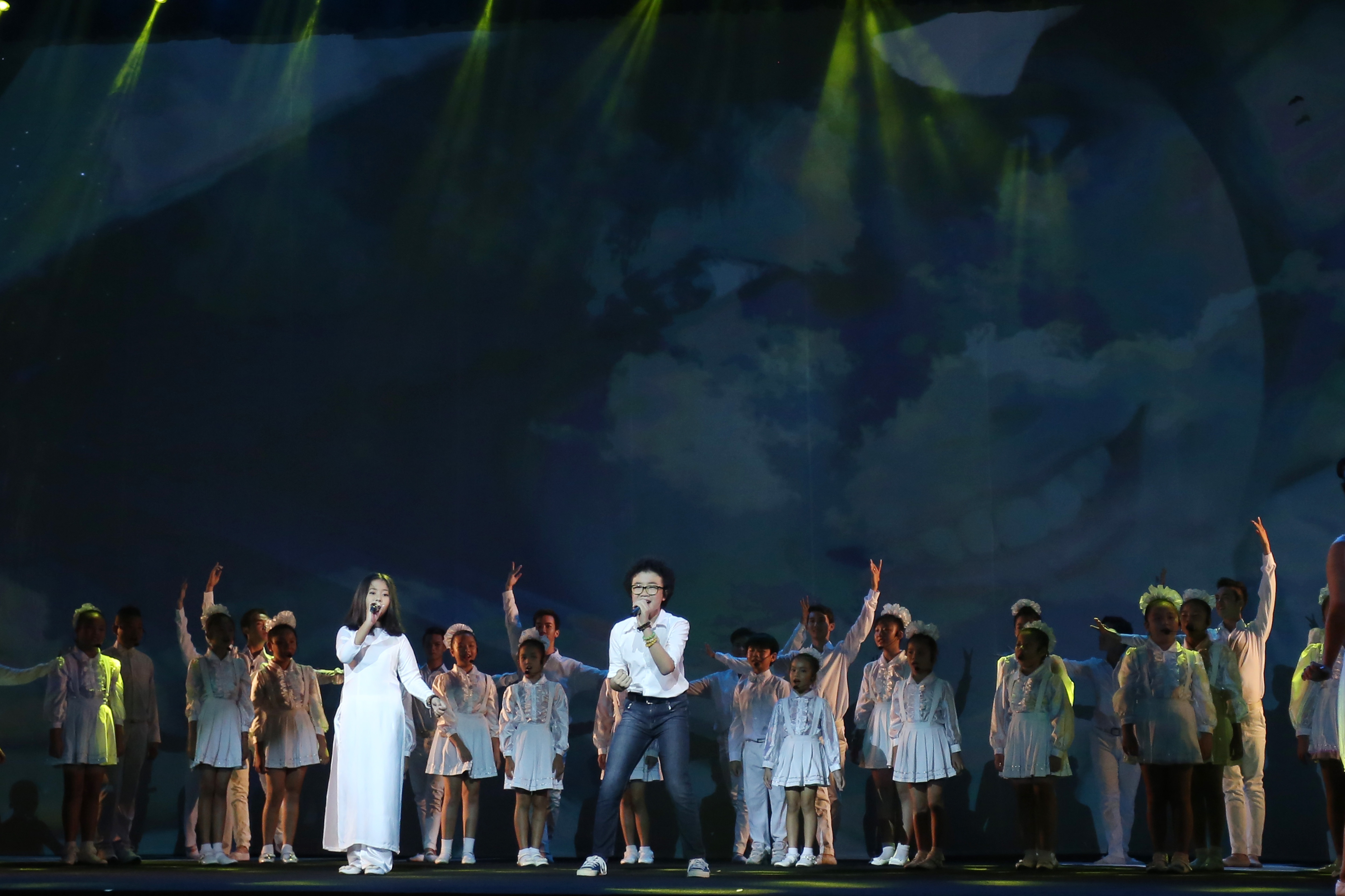 Tối 2/9, "Họa mi tóc nâu" cùng diva Hồng Nhung, ca sĩ Hà Anh Tuấn, Đông Nhi, Uyên Linh... gây xúc động nơi khán giả khi biểu diễn trong đêm nhạc Câu chuyện hòa bình số 2.