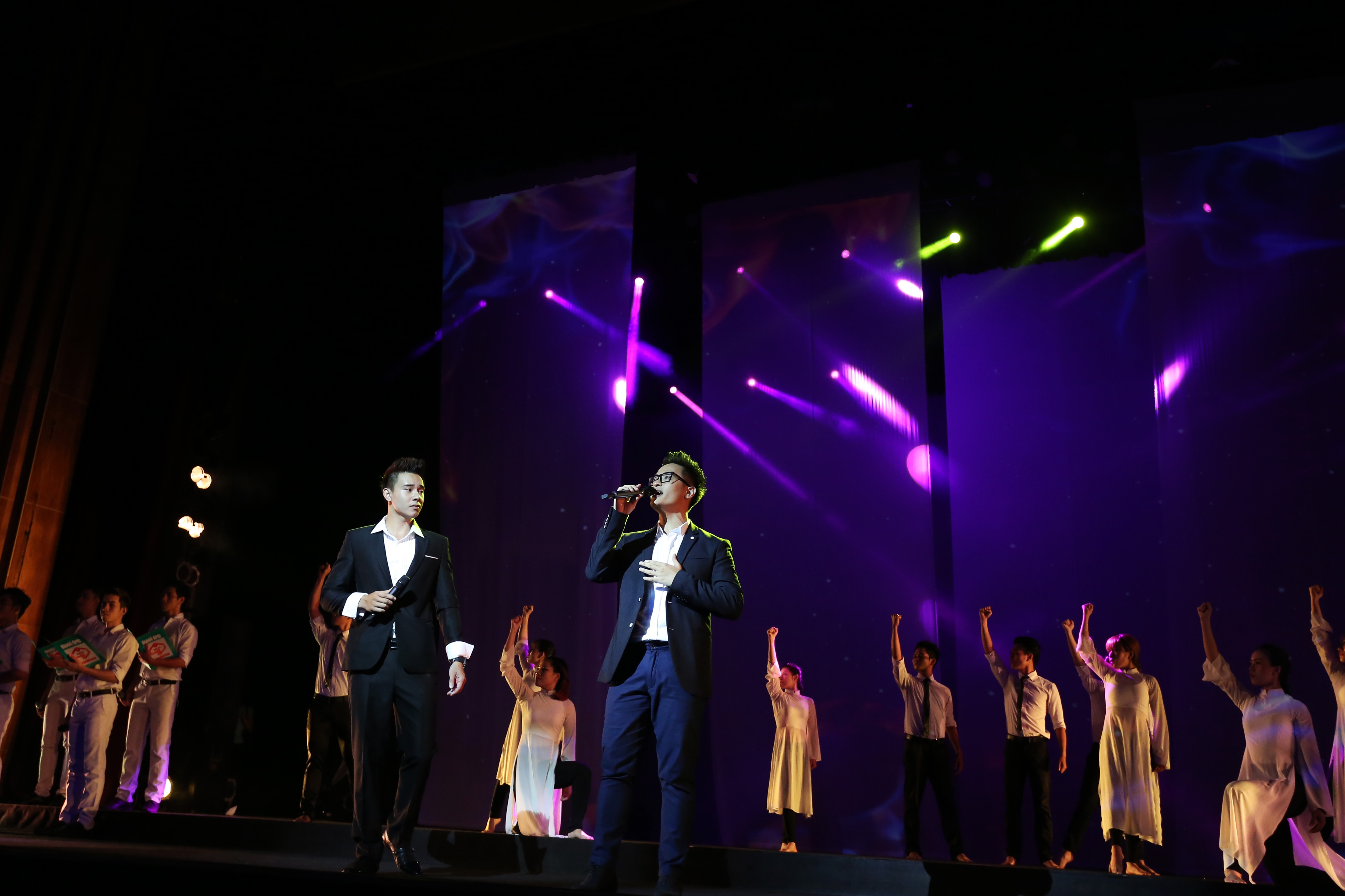 | Lửa thiêng, Người truyền lửa và Người giữ lửa là 3 thông điệp chính được truyền tải khéo léo bằng âm nhạc giàu cảm xúc xuyên suốt hơn 2 tiếng đồng hồ tại nhà hát Hoà Bình, TP HCM. Hà Anh Tuấn, Đông Hùng hợp xướng hòa bình cùng vũ đoàn MTE với ca khúc Hát cho dân tôi nghe. |