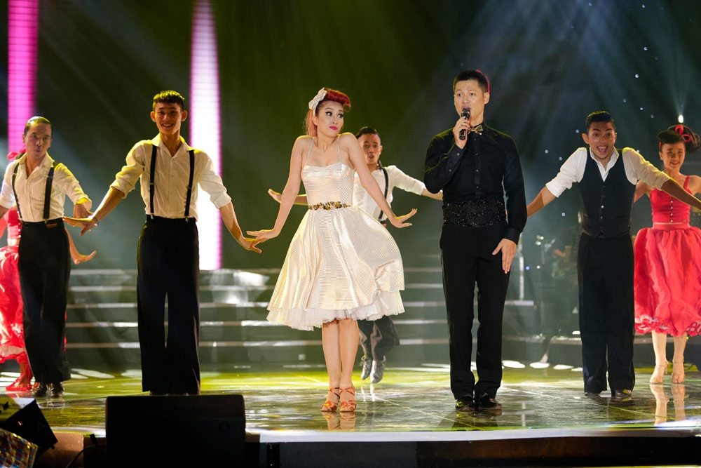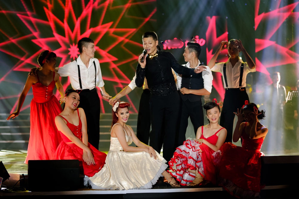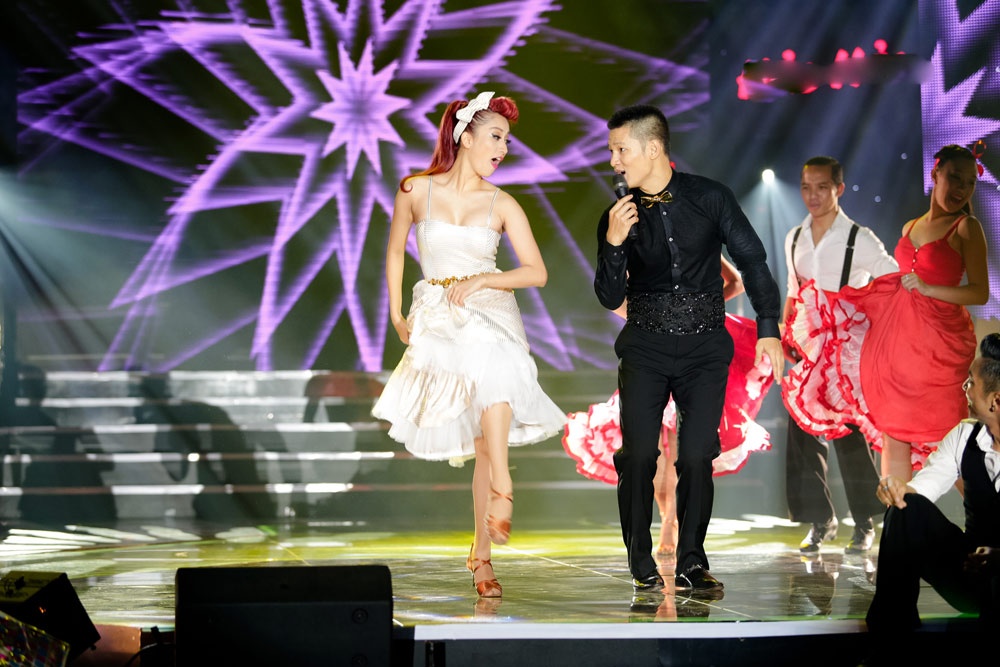 | Đức Tuấn thăng hoa trong những tiết mục có Khánh Thi nhảy phụ họa. |