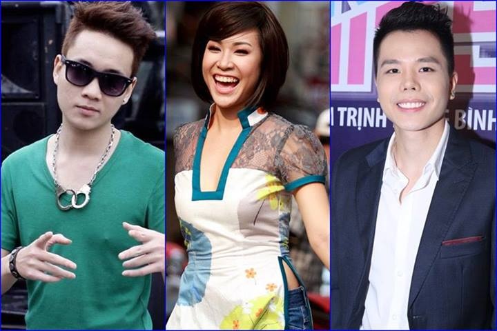 Uyên Linh đứng giữa Trịnh Thăng Bình và Justa Tee. |