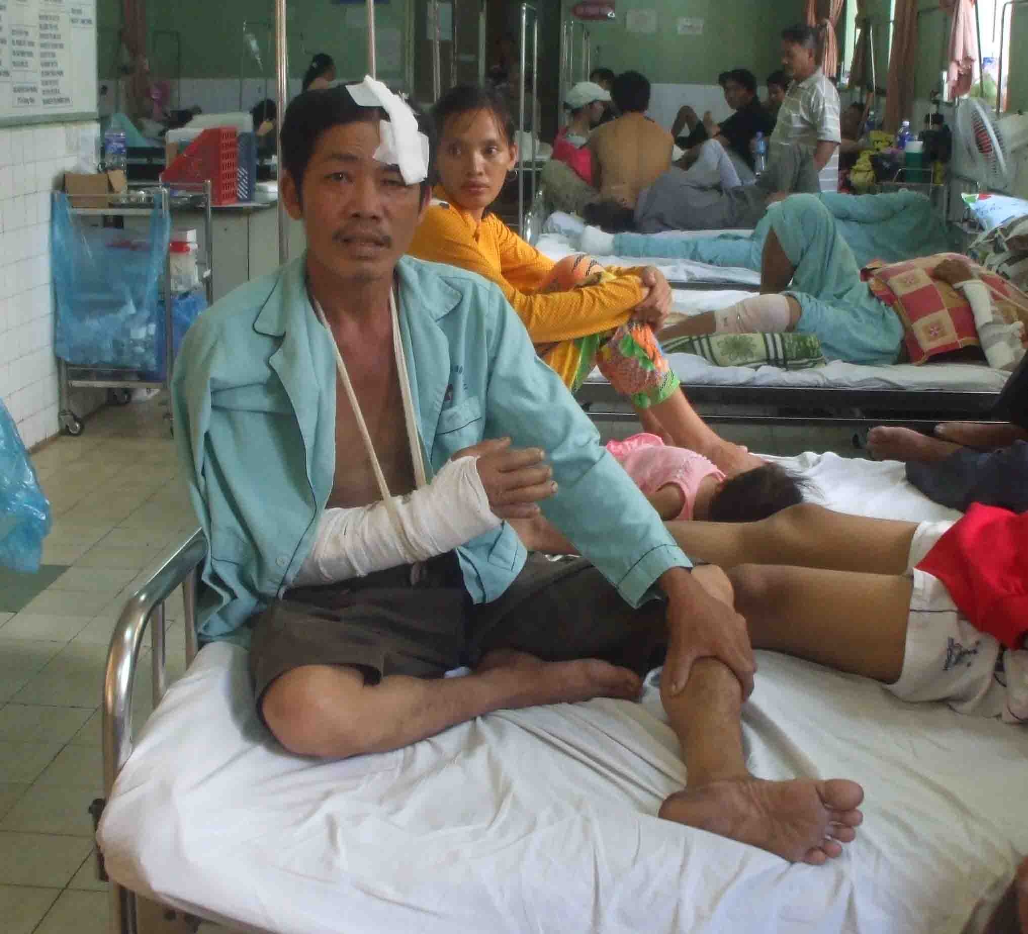 | Anh Bình bị thương khá nặng với nhiều vết thương ở đầu và tay |