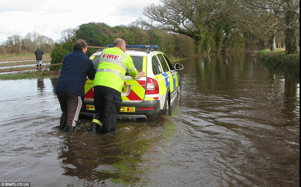 | Một xe cảnh sát không thể hoạt động vì nươc lũ tại Hampshire. Ảnh: BNPS |